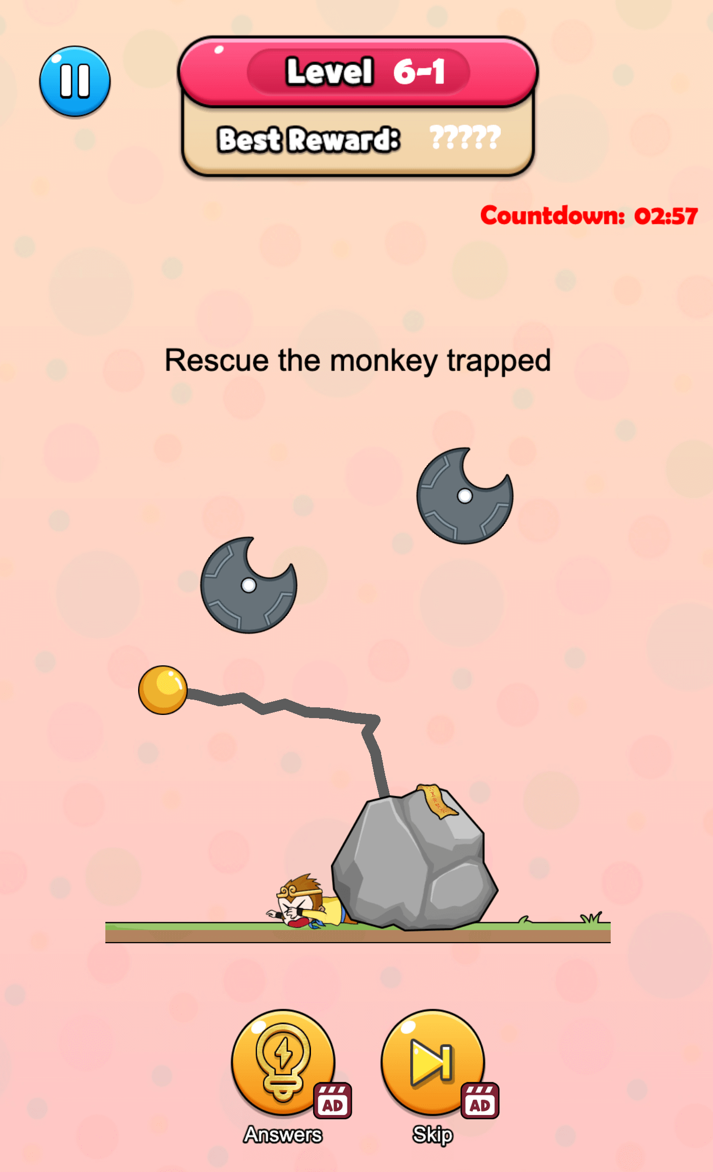 Save The Monkey is a puzzle game that tests your intelligence. A boulder has crushed the little man! Can you build a machine to save him? Drag the parts to assemble a rescue machine and save everyone. As the levels increase, so does the difficulty. Are you ready for the challenge? Start now!.